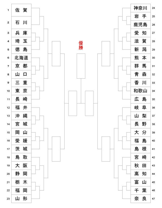 | 熊本県 | 7 | 4 | ― | 2 | 3 | 和歌山県 | |