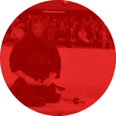 このマークは、全日本剣道連盟発足(昭和27年10月)後まもなく作られ、赤色の部分が「智」、青色の部分が「仁」、白色の部分が「勇」を表します。
